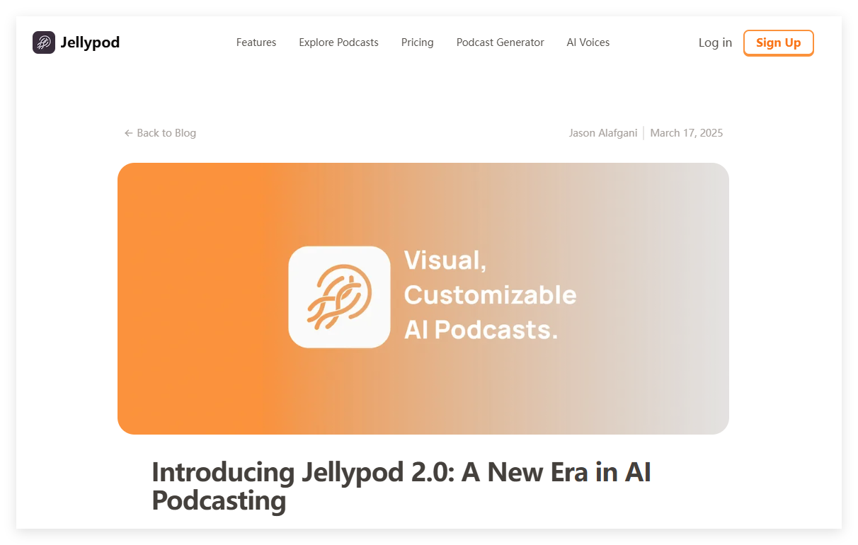 Jellypod 2.0 智创平台重新定义播客创作体验 在播客内容爆发的今天,如何高效创作高质量节目并吸引更多听众成为创作者的核心挑战。Jellypod 2.0作为全球首个AI驱动的多模态播客平台,通